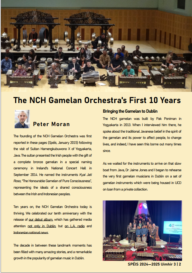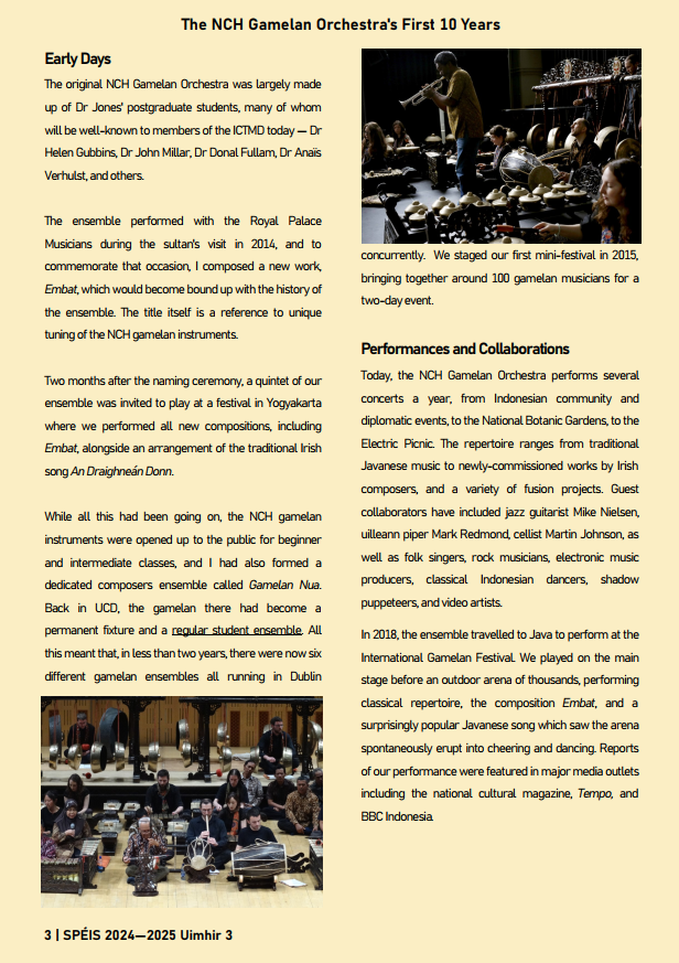 This brief account of the NCH Gamelan Orchestra's first ten years was published in the bulletin of the ICTMD in 2025.
